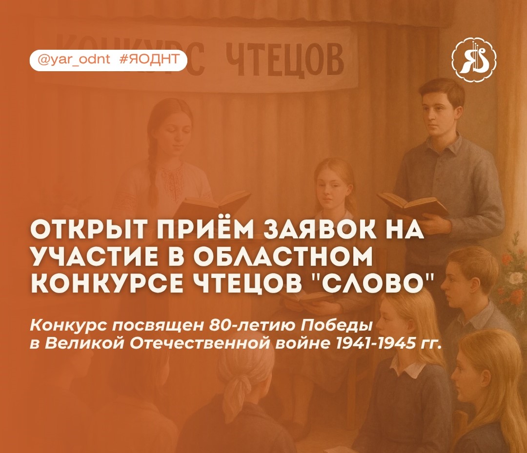 Открыт приём заявок на участие в областном конкурсе чтецов “Слово” Опубликовано 21.10.2025 автором odnt Открыт приём заявок на участие в областном конкурсе чтецов “Слово”.Заявки принимаются до 20 ноября 2025 года.Подробнее о конкурсе в Положении Заявка