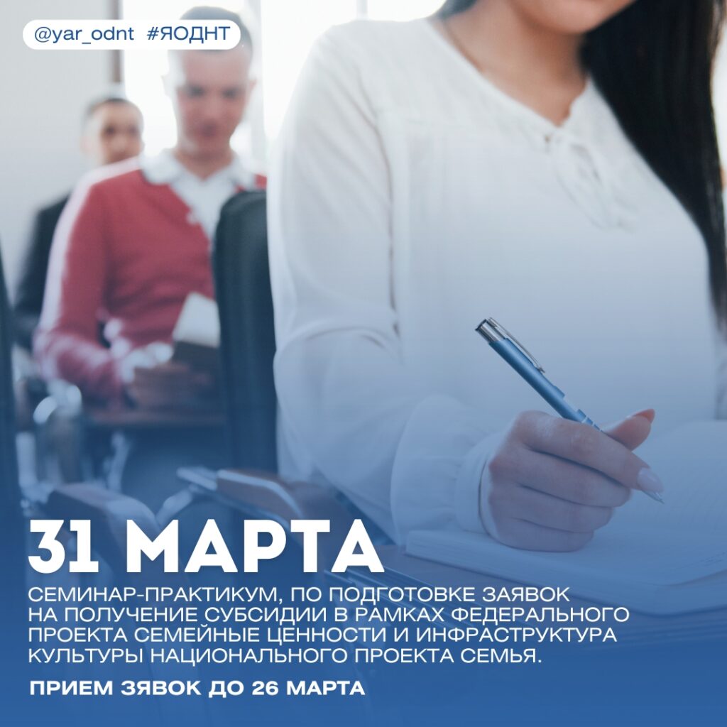 31 марта 2026 года в Областной Дом народного творчества состоится семинар-практикум, посвящённый подготовке заявок на получение субсидии в рамках федерального проекта Семейные ценности и инфраструктура культуры национального проекта Семья.